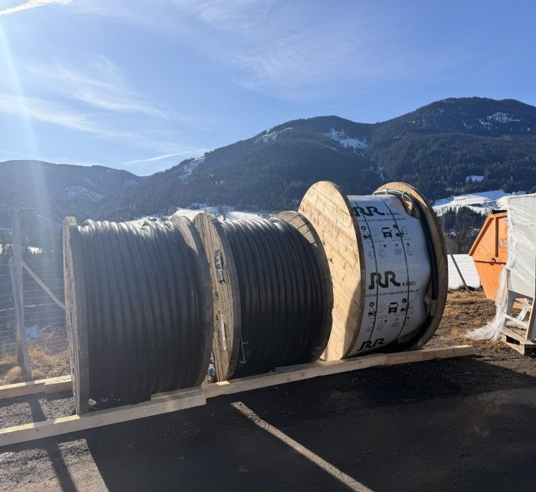 Für eine Baustellenerschließung im alpinen Gelände haben wir eine 1.200 Meter lange Zuleitung verlegt. Hier kam ein Aluminium-Erdkabel mit einem Querschnitt von 240mm² zum Einsatz.
