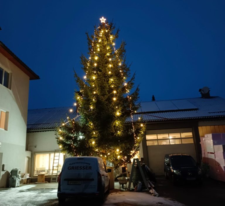 Jedes Jahr stellen wir vor unserem Firmengebäude einen festlich geschmückten Weihnachtsbaum auf, um gemeinsam mit unseren Mitarbeiter:innen und Kund:innen die Adventszeit einzuläuten.