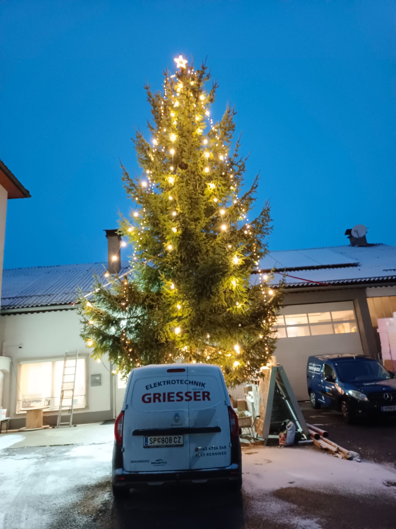 Jedes Jahr stellen wir vor unserem Firmengebäude einen festlich geschmückten Weihnachtsbaum auf, um gemeinsam mit unseren Mitarbeiter:innen und Kund:innen die Adventszeit einzuläuten.